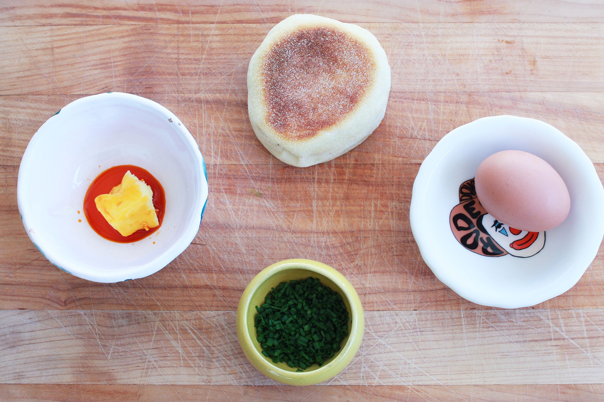 Toast English muffin or bread. Sprinkle with chives.